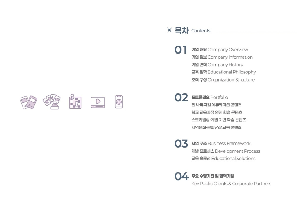 교재 제작, 교육용 보드게임 제작, 교육컨설팅 등